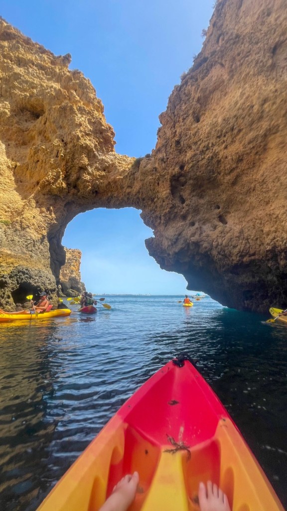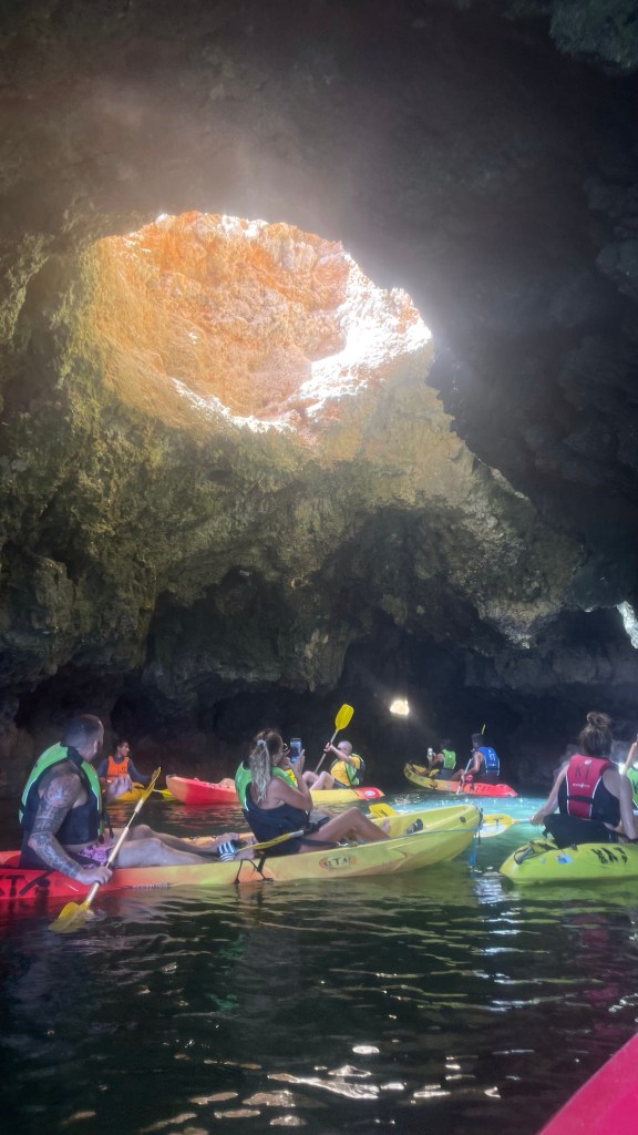 A bucket list item that was on my mind before coming to Portugal was visiting the Benagil Cave. But I knew that it was a little way out of Lagos, so you either find your own way there or book a tour. Luckily, my hostel was offering van trips there for 20€ (not cheap but the other tours were very pricey). It was about a 40min drive to Benagil Beach, and once we were there it was insanely busy. Or so I thought, apparently that wasn’t even that bad. We had to park right up the top and walk down to the beach where we had the option to swim to the cave or rent a kayak (for another 15€). Being the budget friendly (cheap ass) traveller I am, I opted to swim with a couple of the other girls. It wasn’t that far but we did have to dodge millions of kayakers and boaters, so it was a journey for sure. But it was well worth it. The cave was pretty spectacular, I can see why it gets all the hype. I would highly recommend it, but also wouldn’t recommend going on a boat tour as you don’t get to land upon the beach which felt like half the experience.