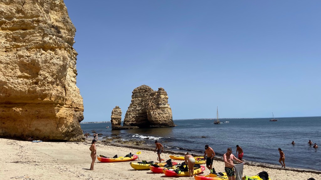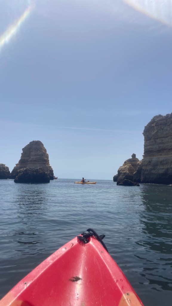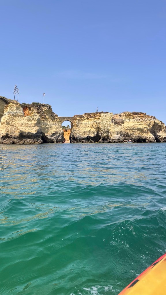 So on the night I arrived I attended a “family bbq” put on by the hostel, this was alright, at the least it was a good meal and had free sangria. During this I booked a coastal kayaking tour for the next day along the coast out to Ponte da Piedade. This was heaps of fun, the coastline and bays were stunning, and the weather was incredible. We were under an extreme heatwave warning though, so it was pretty damn hot. However, going into this I forgot that not everyone knew how to kayak and that it’s not just common knowledge over here. My kayaking partner Adam was nice enough, but as a Brit it became quickly evident that he had little to no kayaking experience, and he was meant to be driving this kayak from the rear. So I really had to do most of the work. Meanwhile, it was as if a school group of children had been let loose in the other kayaks, everyone was all over the place, crashing into one another. No wonder they towed us all back at the end. This was a good time, and well worth it though. Afterwards I went and got a late lunch (it probably wasn’t even late for Europeans) where I had one of the best burgers I’ve ever had. It was fantastic.