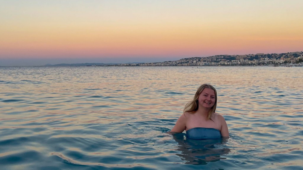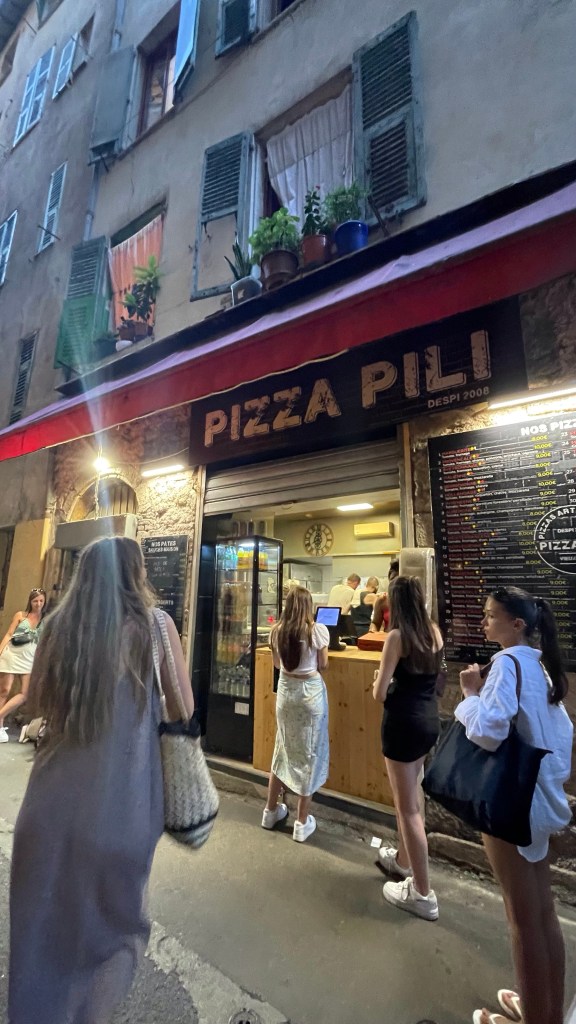 In Nice itself, the old town was great, lots of shops and restaurants to be explored. I enjoyed getting a cheap takeaway pizza (only 8€) from Pili’s Pizza and taking it down to the beach along with a beer to watch the sunset! One morning, I got up at 6am and headed to the beach with a friend to go for a sunrise swim. This was really peaceful and beautiful, the colour of the water as the sun rises was so insanely blue, giving an ethereal vibe. Definitely worth the early wake up call.