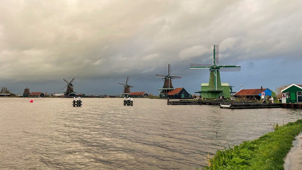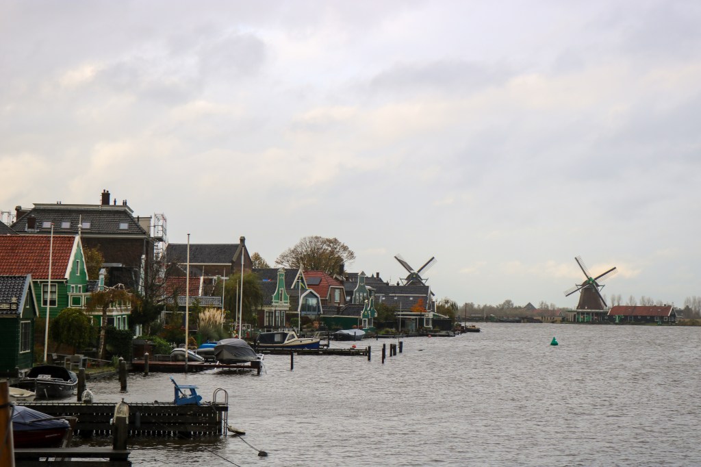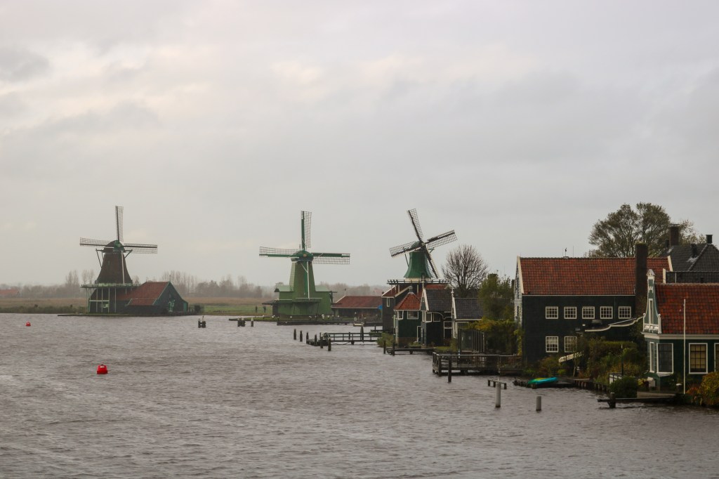 After some lunch, I jumped on the train for 20min to visit Zaanse Schans, a historic town known for its windmills. Whilst I got hailed on, it was absolutely worth it. The windmills were so quintessentially Dutch and still operating! One was a sawmill, and another grinding dyes and pigments. I visited a cheese shop – not a biggie for me as I don’t really eat cheese, but also a clog museum. Here I was shocked, I assumed that clogs were just a traditional Dutch shoe (they are) but their main purpose is as a safety shoe! To quote the museum; “clogs, the medieval version of steel capped boots”. They’re still worn today by farmers, factory workers and so on. After Zaanse Schans, it was straight back to the hostel to get dry and warm. But I did get to catch a stunning sunset as I made my way back!