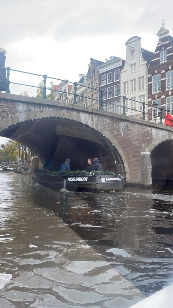 While I waited for that to be made, I embarked on a canal cruise. Thankfully the boat was covered in, it would have been awfully cold and wet otherwise. It was cool to see both the canals and streets from a different perspective. I was shocked at the number of bridges – over 1,700, Venice only has 1,300! On the boat we went past the Anne Frank House, and the James Bond House, as well as many other buildings with significance. Following the canal tour I collected my chocolate bar, and wandered around some more.