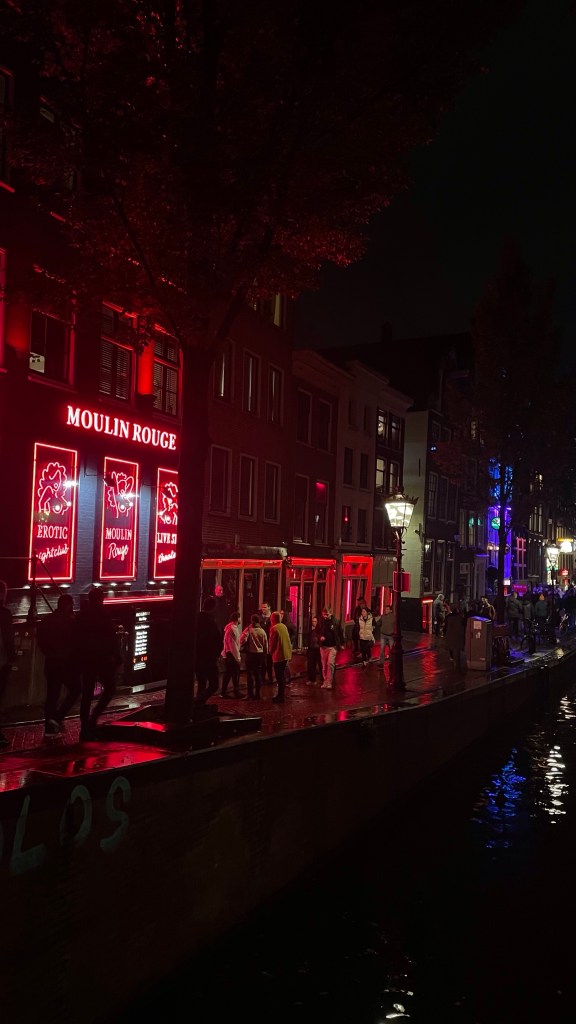 In the evening I met up with some people from my hostel, and a couple of others and we went on a pub crawl. This was lots of fun, not to mention Amsterdam is even more stunning at night! The Red Light District was certainly something else. I didn’t spend much time here, just passed through when changing pubs, but I now understand exactly why it has the reputation it does. For those who don’t know, it is an area where sex workers offer their services from behind a window, and there are a variety of strip clubs and peep shows on offer. It’s probably easier to google it, rather than me trying to explain it in any more detail.